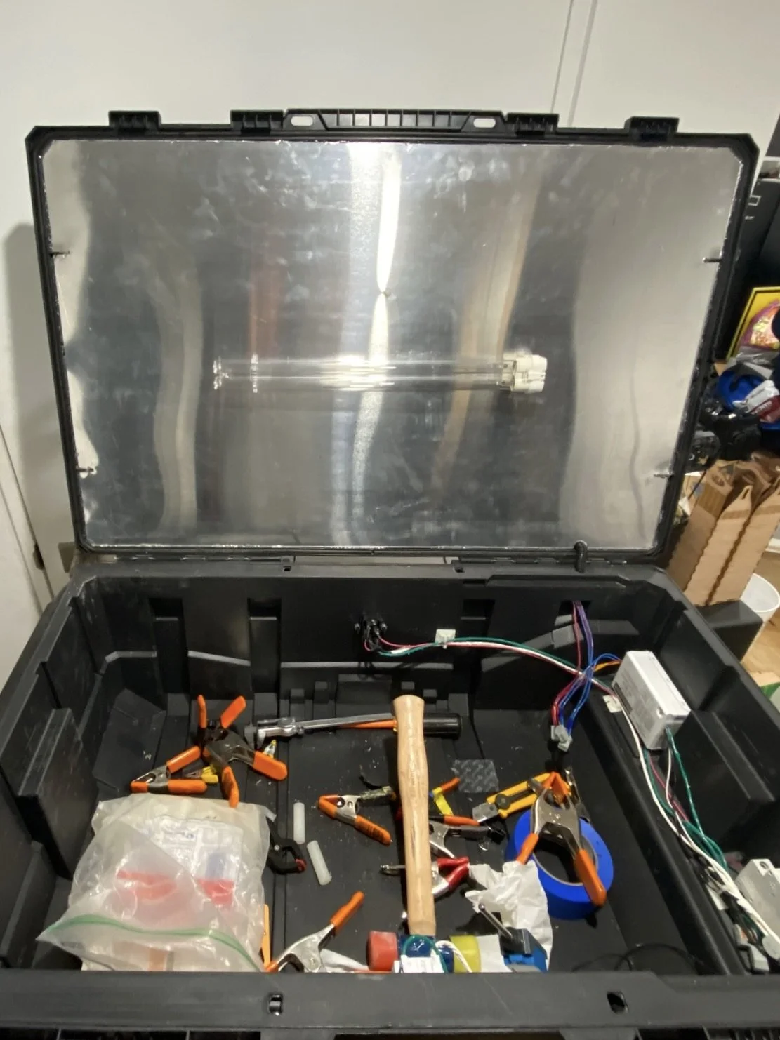 Designed and built a UV-C chamber with a light-tight, reflective interior for efficient sterilization.
